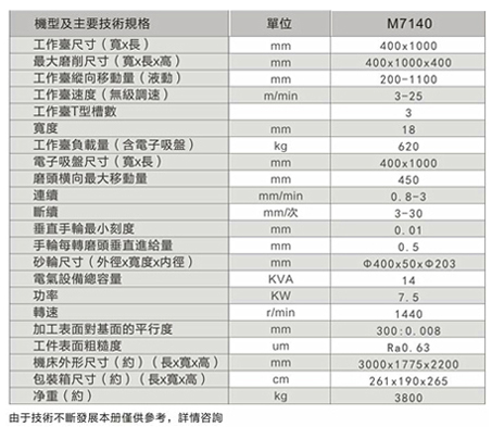 1、本機(jī)床屬于重切削磨床,適用于機(jī)械制造、模具等行業(yè)的平面磨削??赡ハ麂摷?、鑄件及有色金屬等材料。工件可直接固定在工作臺面上或放在電磁吸盤上磨削。
